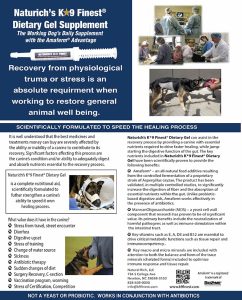 I would like to thank you for the Naturich’s K9 Finest product you offer. I was skeptical at first but out of desperation, tried the paste first to try and clear up some diarrhea. It worked immediately.